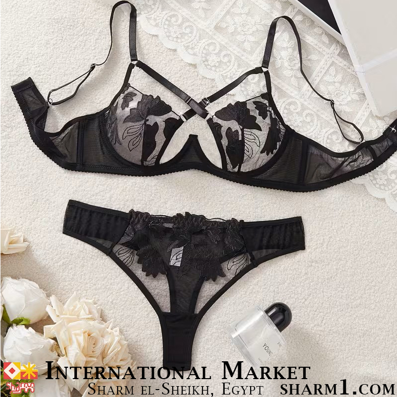 Комплект белья черный прозрачный с вышивкой