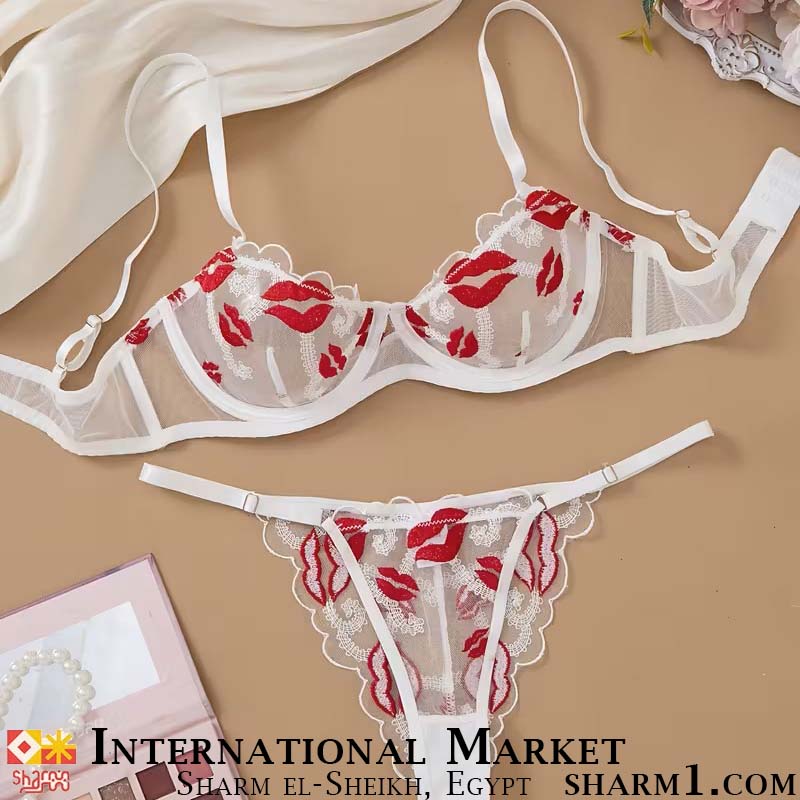 Комплект белья белый прозрачный с поцелуями