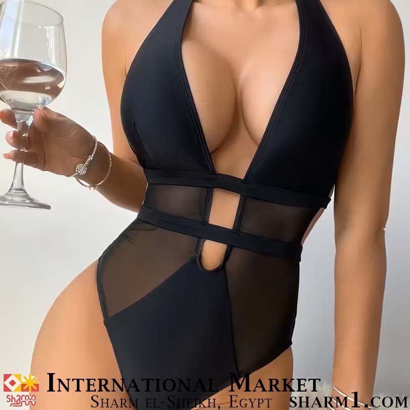 Слитный купальник черный с сеткой