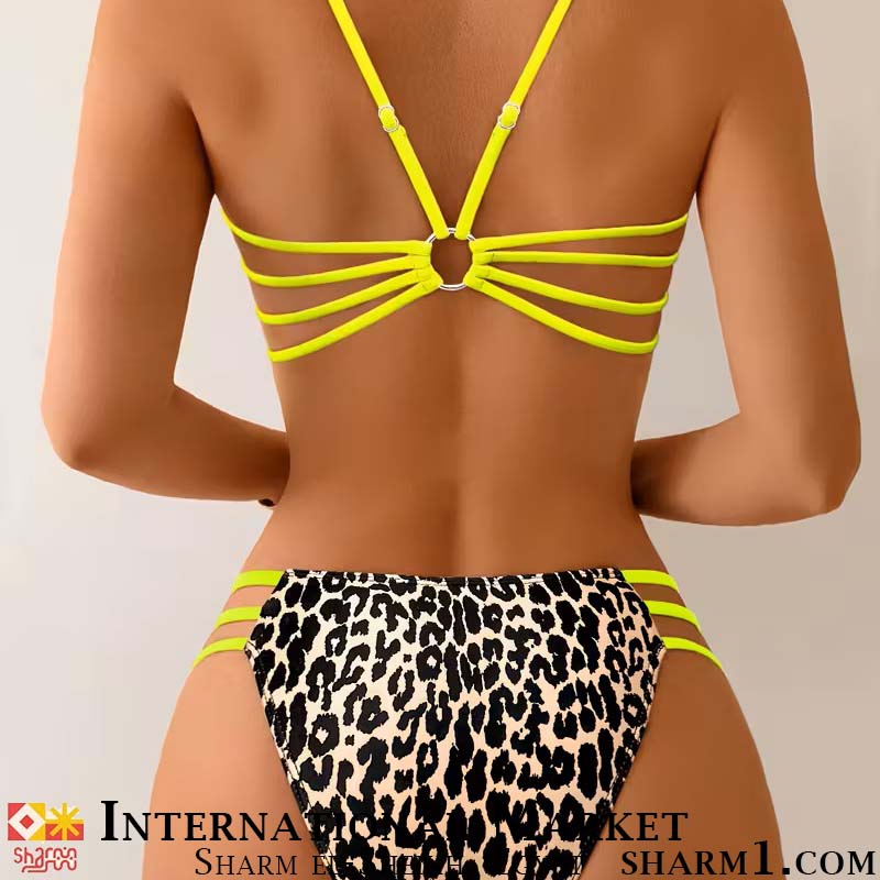 Купальник с принтом леопард и салатовыми лямками