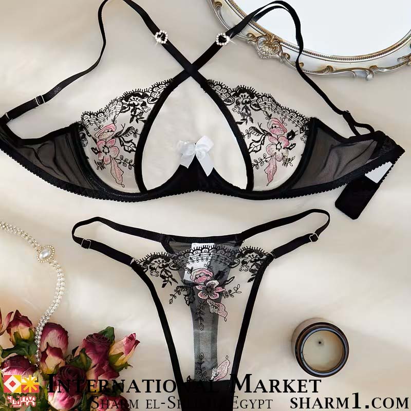 Комплект белья черный прозрачный с вышивкой