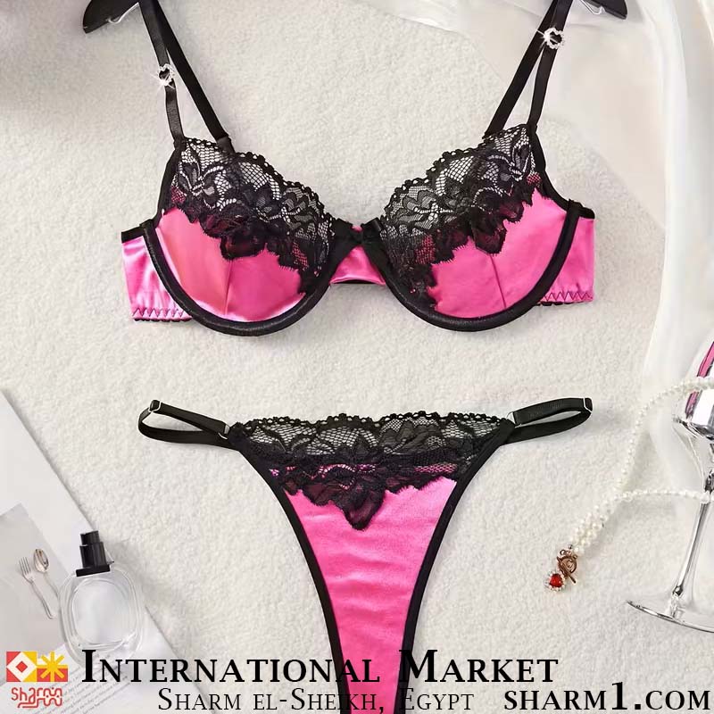 Комплект белья розовый с черным кружевом